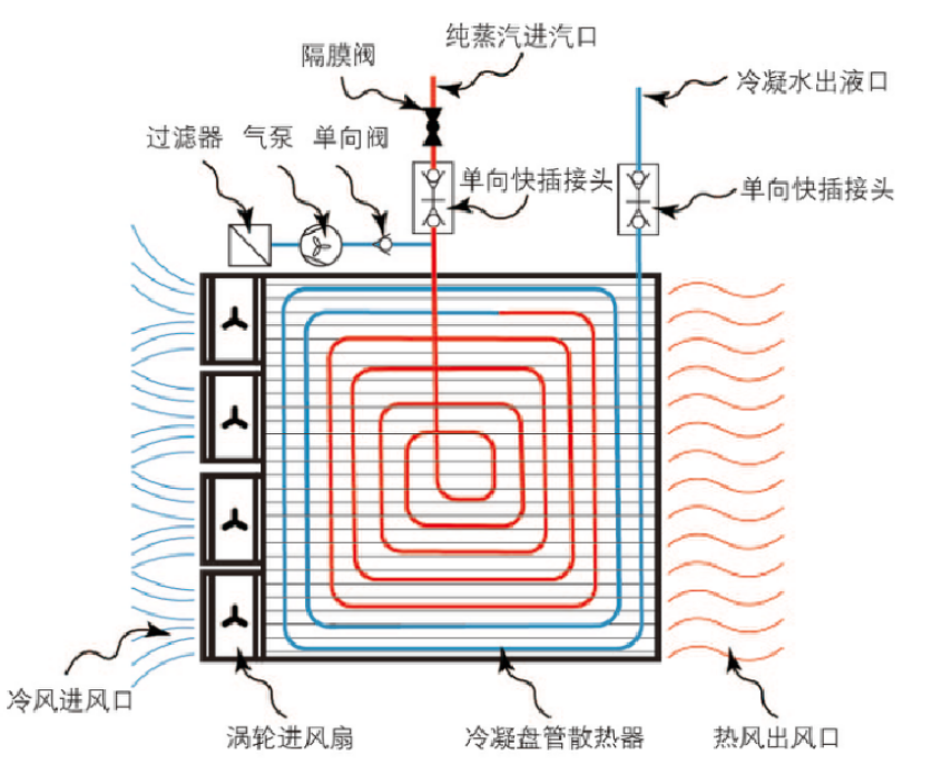 蒸汽广泛应用于制药工艺中加热、加湿、动力驱动、干燥等步骤。蒸汽是良好的灭菌介质,纯蒸汽具有极强的灭菌能力和极少的杂质,主要应用于制药设备和系统的灭菌。纯蒸汽用于湿热灭菌工艺时,冷凝液需满足注射用水的要求,还需在不凝性气体、过热度和干燥度方面达到 EN 285 2015和HTM 2010 标准的要求。